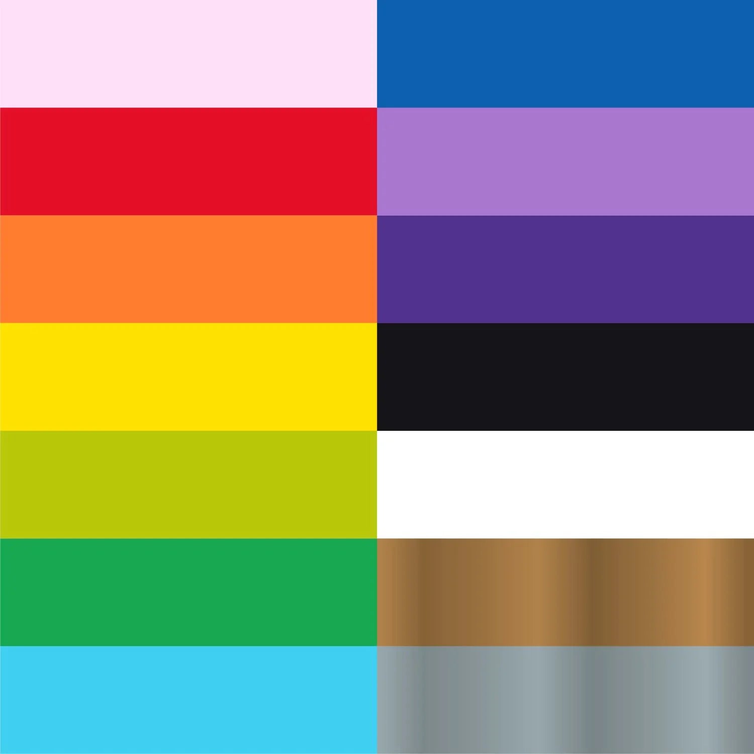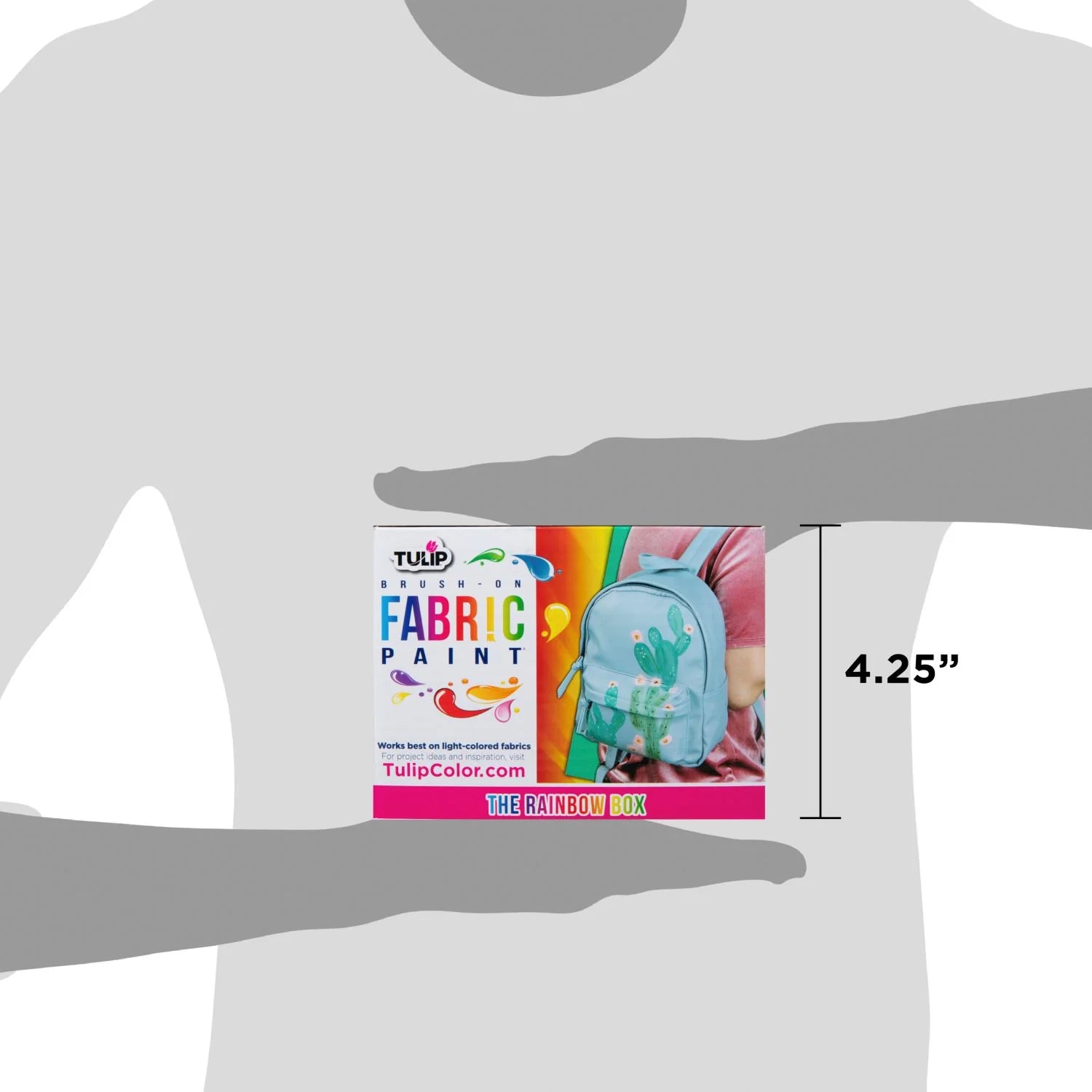 The Rainbow Box has all of the essentials for your colorful creations! Includes 14 (2 fl. oz.) Brush-On Fabric Paints in a must-have palette of essential rainbow colors: Pink Lemonade, Red, Orange, Yellow, Primrose, Green, Light Blue, Royal Blue, Periwinkle, Purple, Black, White, Gold Metallic, and Silver Metallic.