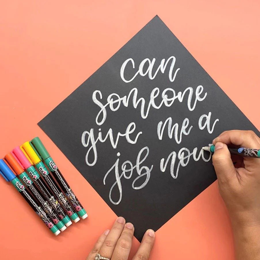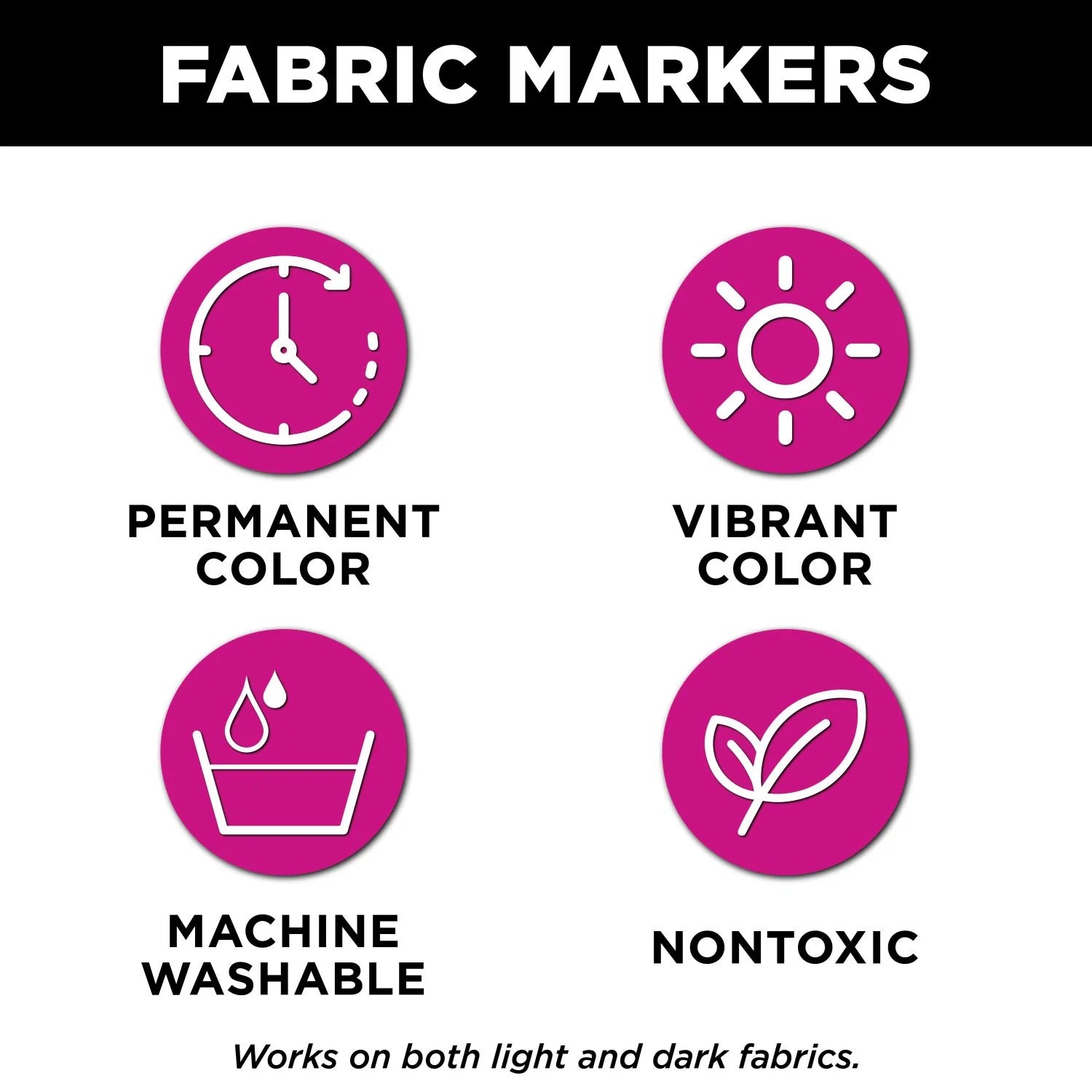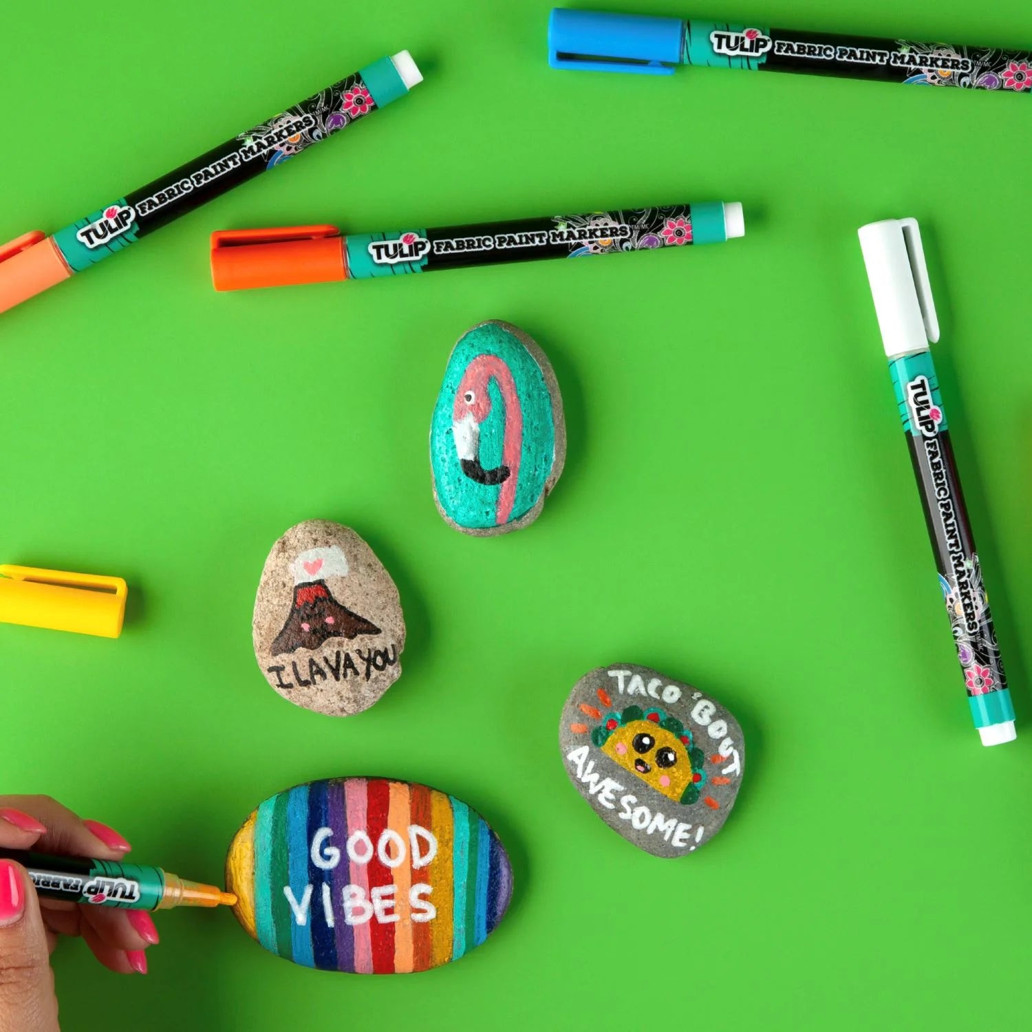 Give your fabrics a boost of color with Tulip Fabric Markers! This Rainbow 15 Pack includes a classic mix of bullet-tip markers that are perfect for doodling, stenciling, coloring, and writing on fabrics. Tulip Opaque Fabric Markers dry permanently on light and dark fabrics, so let your imagination take over on a variety of DIY craft surfaces!