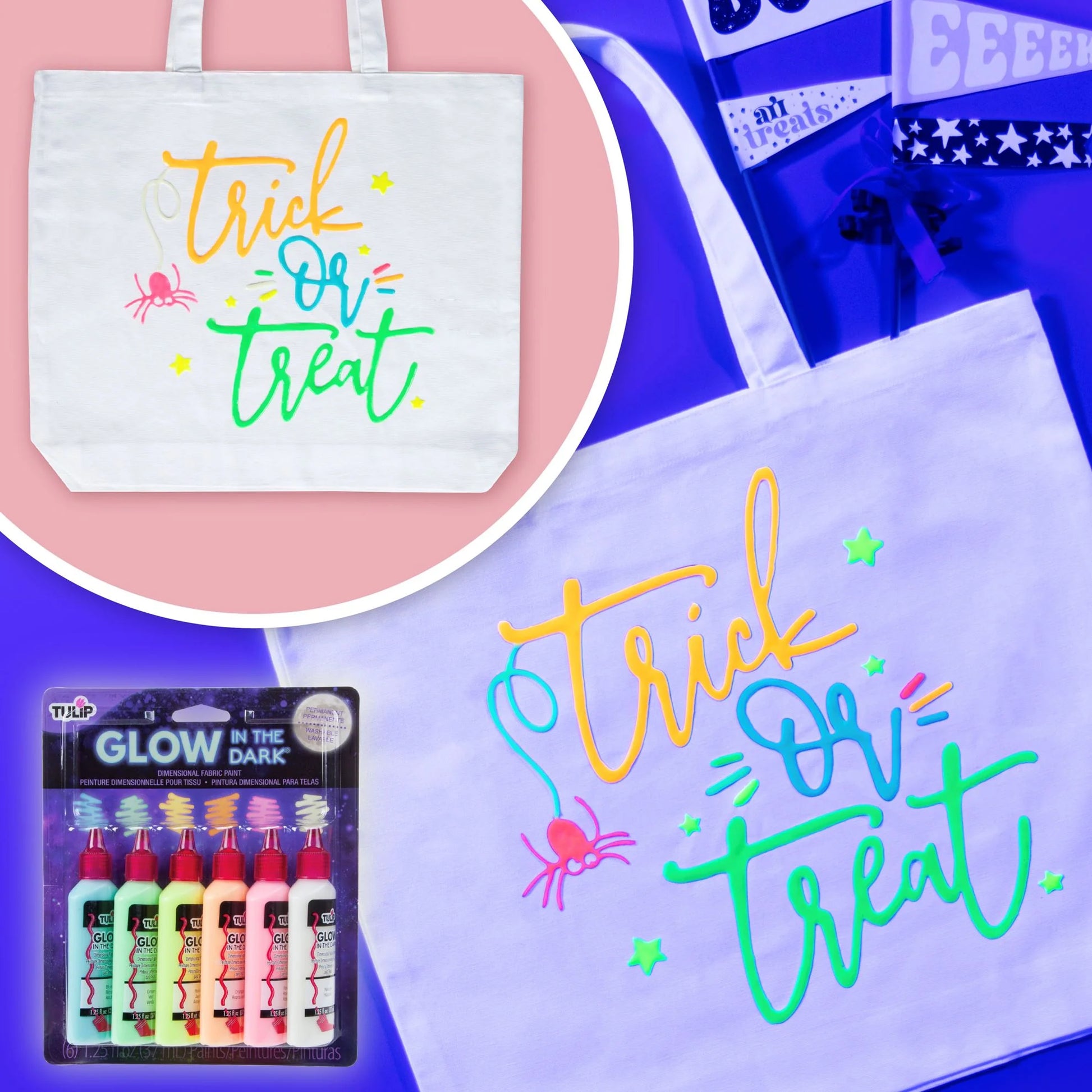 Make your craft and fashion projects stand out with Puff Paint! Tulip Puff Paint craft paints are nontoxic and dry permanent, flexible, and machine washable with a glowing dimensional texture that stands out on every project. This Glow Pack includes 6 (1.25 fl. oz) glow-in-the-dark Puff Paint craft paints!